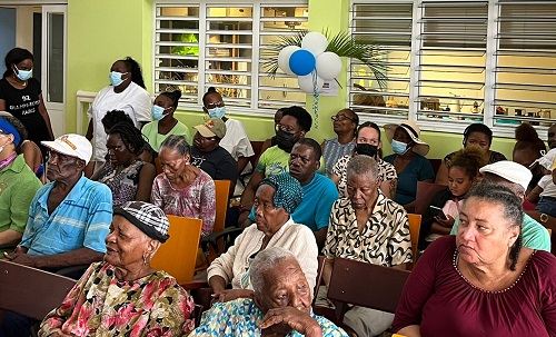 Les membres du groupe Sé sa menm sont venus avec leur répertoire bien rodé et les bras chargés de présents pour les résidents. Lise Sousseing, responsable du Secours adventiste de l’archipel Guadeloupe, présente pour l’occasion, a offert des lots individuels comprenant notamment des produits d’hygiène.