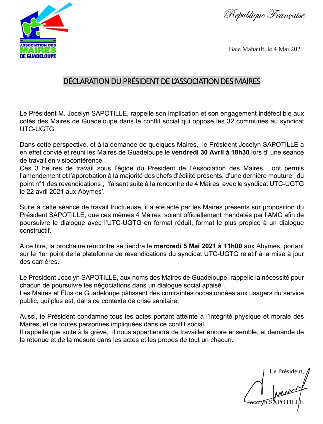 Le prochain rendez-vous des quatre maires avec l’UTC-UGTG sera demain. Même lieu même heure que la fois précédente. Avec quelques espoirs…