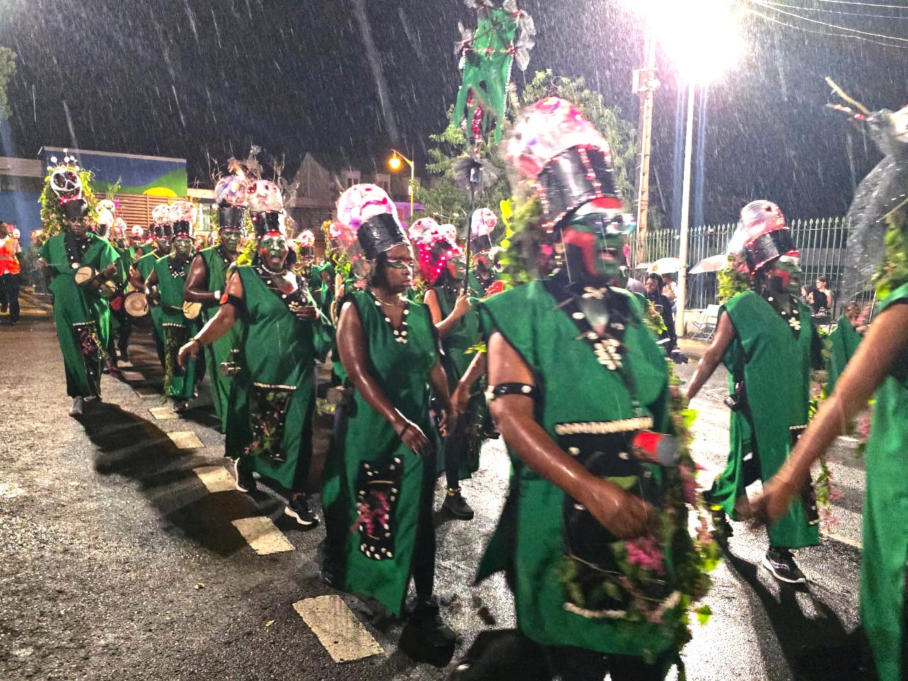 La pluie, par intermittence, a arrosé les carnavaliers participant au Volan an lari la vendredi soir dans les rues de Basse-Terre. Mais elle n’a pas