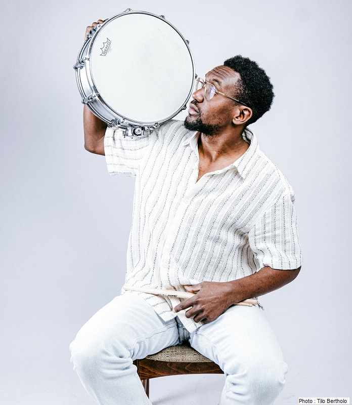 En sortie de résidence à Tropiques Atrium, le batteur Tilo Bertholo partage avec le public le fruit de ses recherches.