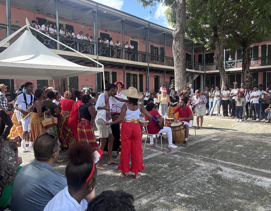 Pour assister à la comédie musicale préparée par les élèves, avec la participation de Benzo, une foule était rassemblée dans la cour du lycée Carnot. La comédie musicale a mis en lumière les traditions de Guadeloupe lors des fêtes de Noël, en s’appuyant sur un conte de Benzo, Nwèl dépinanninannan jika jodijou. Avec cette animation, les élèves, membres de La Bande à Carnot, ont apporté leur contribution à l’organisation de cette journée.