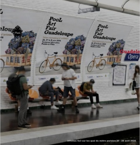 Pendant six jours, du 20 au 26 avril, les usagers du métro parisien pourront découvrir l’affiche 2026 du salon Pool Art Fair Guadeloupe. La campagne d’affiche qui a débuté ce lundi concerne 77 stations de métro.
