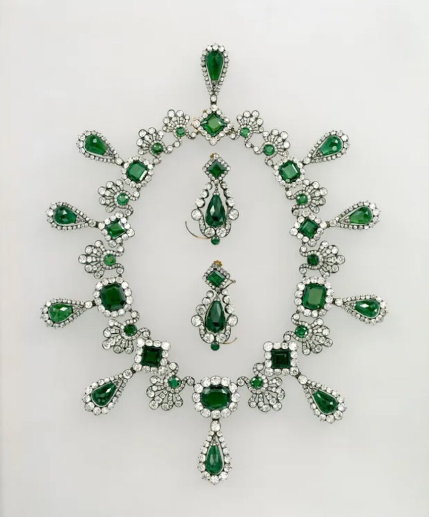 - Paire de boucles d’oreilles en émeraudes de la parure de Marie-Louise