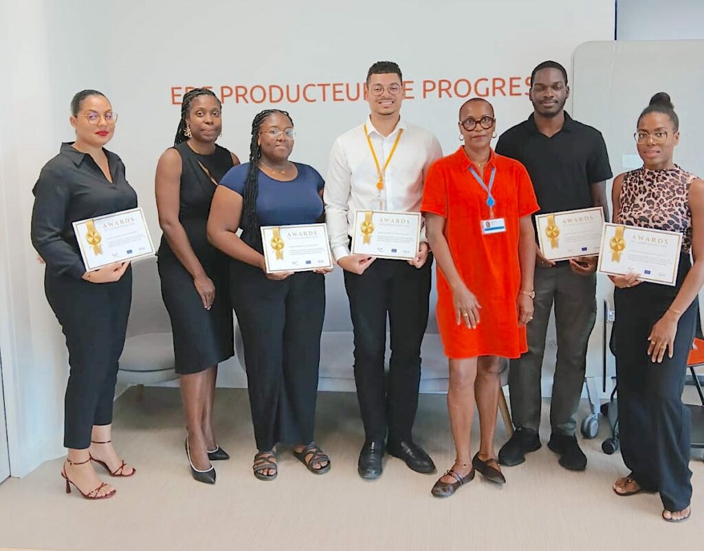 Lors de la remise du trophée, EDF Archipel Guadeloupe a mis à l’honneur cinq alternants au parcours remarquable, ainsi que leur maître d’apprentissage.