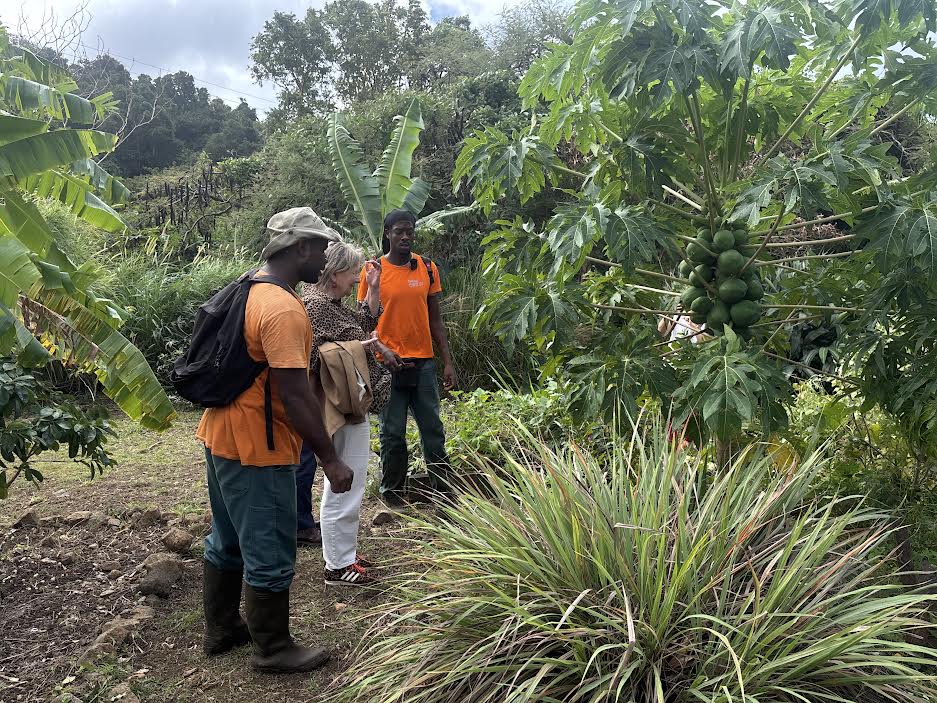 Dans l’arrière-cour des locaux de l’association partagés avec une école, le clitoria, la citronnelle, la trois-tasses et d’autres plantes médicinales, fruits et légumes sont cultivés dans un jardin créole tenu et entretenu par les salariés en insertion de l’association.