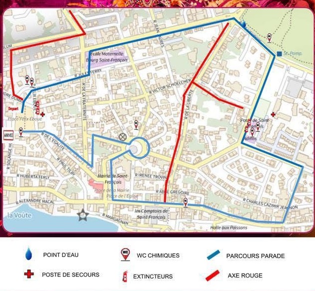 Pour accueillir les carnavaliers et le public dans des conditions optimales de sécurité, les rues du chef-lieu seront interdites d’accès dès 18 heures. Les groupes prendront le départ devant l’entrée de la préfecture (rue Lardenoy) en direction du Champ d’Arbaud, de la rue Ali Tur, des rues Campenon, Galisbée, Saint-François, du Dr Cabre, du Dr Pitat, Dumanoir, Cours Nolivos, République. Arrivée au rond-point du Conseil départemental (rue de la République).