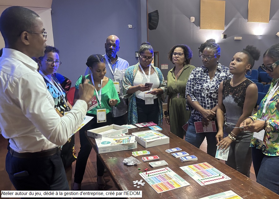 Parmi ces ateliers, il y avait le jeu créé par l’IEDOM autour de la gestion d’entreprise. Ce jeu de plateau (également disponible en version digitale) peut se pratiquer à plusieurs. Au programme, les différents aspects pour gérer une entreprise, ses clients, ses dépenses et ses ressources.