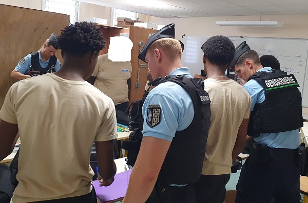 Sous l’autorité du préfet de Guadeloupe, Thierry Devimeux, de la procureure Caroline Calbo, du recteur d’académie, Gabriele Fioni, les gendarmes ont effectué une opération de contrôle dans l’enceinte du lycée Bertène Juminer (Lamentin), ce mardi 7 octobre.