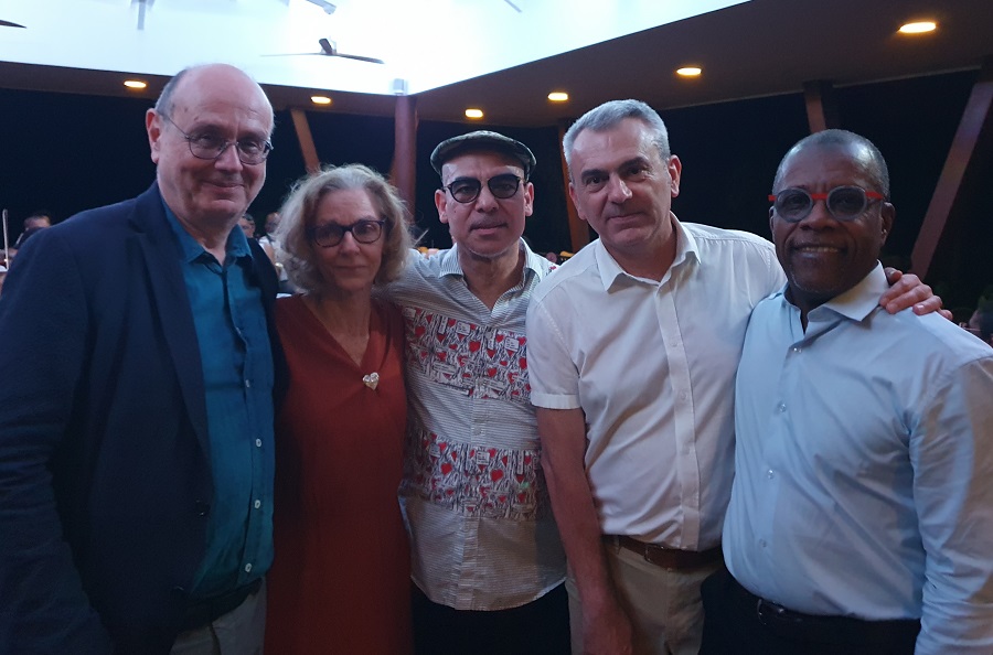 La convention tripartite a été officialisée le 9 avril, au Jardin de Valombreuse (Petit-Bourg), en présence de nombreuses personnalités, dont Simone Schwarz-Bart, David Nébor, maire de Petit-Bourg, les équipes de la Direction des Affaires Culturelles (DAC), Gérard Poumaroux, directeur de L’Artchipel-Scène nationale, Eddy Compper, directeur du Centre culturel Sonis, Steve Nuissier, organisateur du festival Première rencontre autour du piano, Philip Sadikalay, saxophoniste…