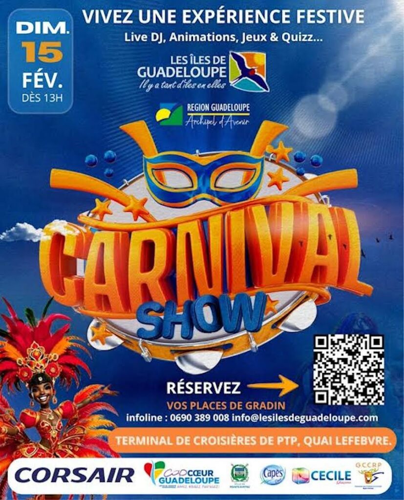 À l’occasion des festivités carnavalesques du dimanche gras, le Comité du Tourisme des Îles de Guadeloupe (CTIG) donne rendez-vous au public dimanche 15 février, de 13 à 20 heures, pour le grand retour du Carnival Show, au Quai Lefèbvre, à la sortie du terminal de croisière sur le circuit de la parade.