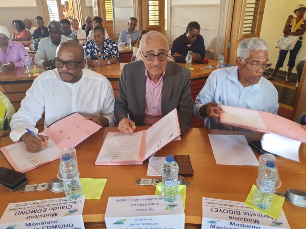 Ils étaient presque tous là, dans la salle du conseil de la ville de Capesterre Belle-Eau, maires ou adjoints au maire du Sud de la Basse-Terre, pour signer un engagement avec le Département et l’Etat : Jules Otto, Jean-Louis Francisque, Louly Bonbon, André Atallah, Lucie Mirre-Weck, Marie-Yveline Théobald- Pontchâteau, Rolande Nadille-Vala, Georget Coezy, Rozan Bassette.