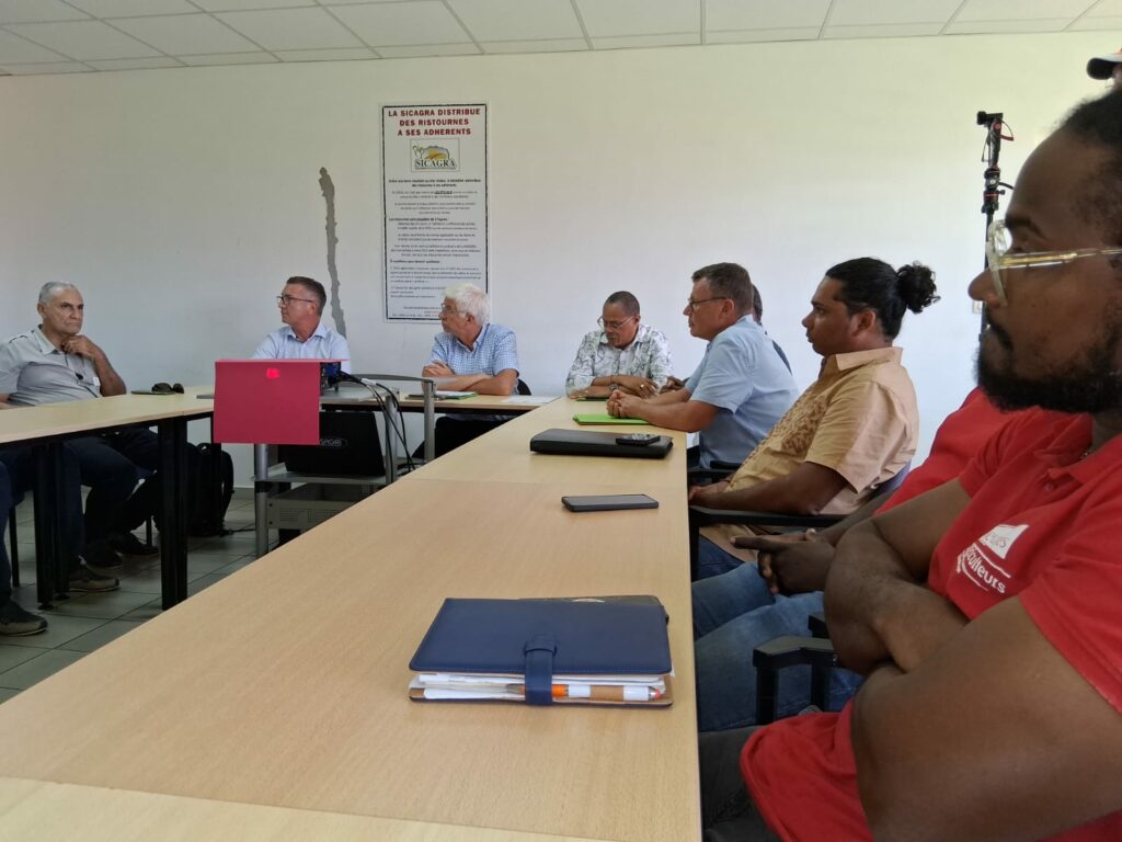 SICAGRA. Cela veut dire SICA Guadeloupe Restructuration Agriculture. Tout un programme. C’est donc dans les locaux de cette société agricole, à Sainte-Marie d’Arles, Le Moule, que le préfet était attendu par la plupart des représentants des syndicats agricoles, des Sicas, de l’Usine sucrière de Gardel et de la Sucrerie et Rhumerie de Marie-Galante (SRMG) et de la Chambre d’agriculture.