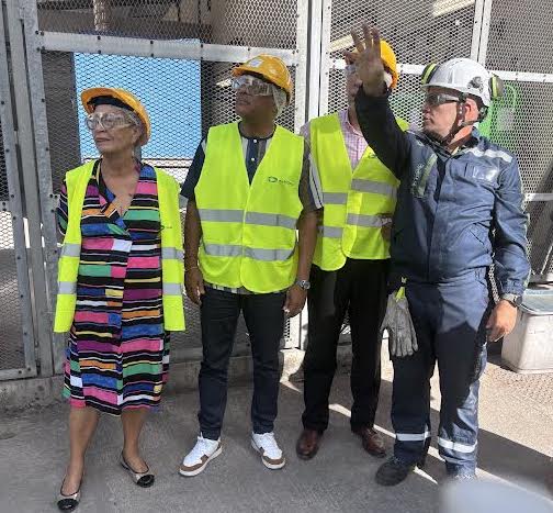 Après un passage à la distillerie Damoiseau, le préfet s’est rendu à Albioma au Moule pour visiter l’entreprise qui crée de l’énergie à partir de la canne et de la mélasse. Albioma représente environ 800 millions d’euros de chiffre d’affaires et produit 28 % de l’électricité de la Guadeloupe. Au niveau de cette production, l’électricité est à 95 % renouvelable; l’objectif étant d’atteindre la barre de 100% avant l’année 2030. L’autonomie peut être envisagée d’ici 2050.