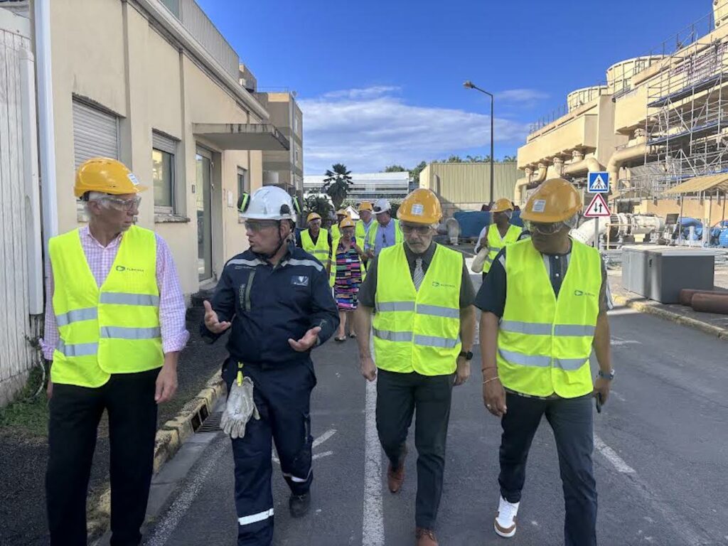 Après un passage à la distillerie Damoiseau, le préfet s’est rendu à Albioma au Moule pour visiter l’entreprise qui crée de l’énergie à partir de la canne et de la mélasse. Albioma représente environ 800 millions d’euros de chiffre d’affaires et produit 28 % de l’électricité de la Guadeloupe. Au niveau de cette production, l’électricité est à 95 % renouvelable; l’objectif étant d’atteindre la barre de 100% avant l’année 2030. L’autonomie peut être envisagée d’ici 2050.