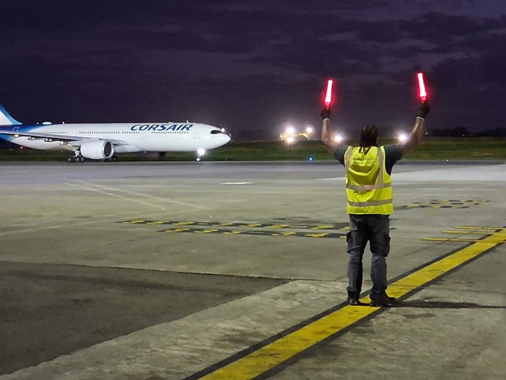 Hier soir, le premier vol s’est posé, accueilli par Valérie Césarus-Samuel, présidente du CTIG, Rodrigue Solitude, directeur général du CTIG, Béatrice Govindin, directrice du tourisme à la Région Guadeloupe, Daisy Adelaïde, directrice financière, membre du Directoire de l’aéroport international Guadeloupe-Maryse Condé, Eddy Luce, directeur Antilles de Corsair et son équipe dont Samson de Souza, superviseur de bases.