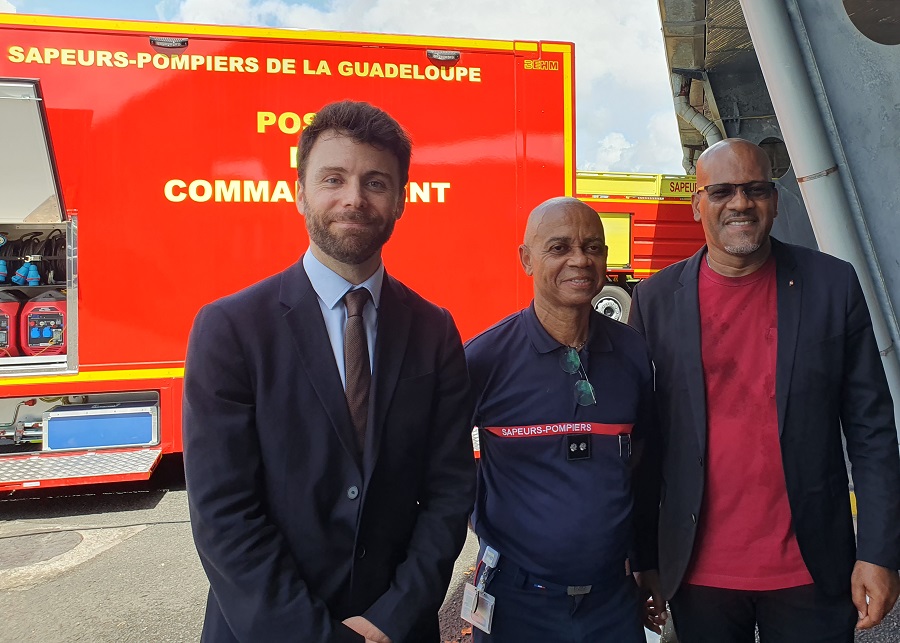 « L’absence de réserves en eau du fait d’une infrastructure vieillissante complique la tâche des secours face aux nombreux risques naturels, rappelle François-Xavier Richard-Rendolet, directeur de cabinet du préfet de Guadeloupe. Ces véhicules de grande capacité en eau permettront aux pompiers de lutter contre les incendies de grande ampleur, mais également en cas de fortes intempéries, d’éruption volcanique… ».