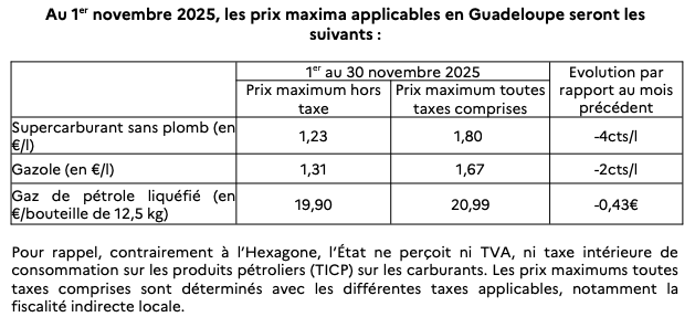Guadeloupe. Les prix des hydrocarbures à la baisse