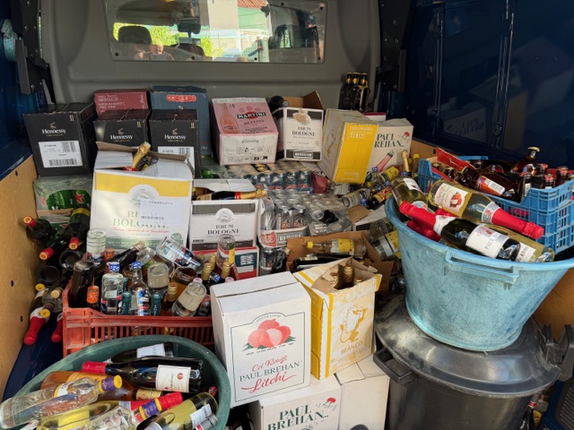 • Dans le premier commerce, une épicerie ne disposant d’aucune autorisation de vente de boissons alcoolisées, ce sont plus de 2 000 bouteilles d’alcool qui ont été saisies.