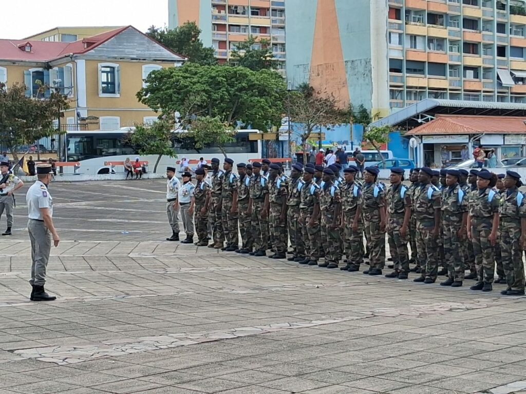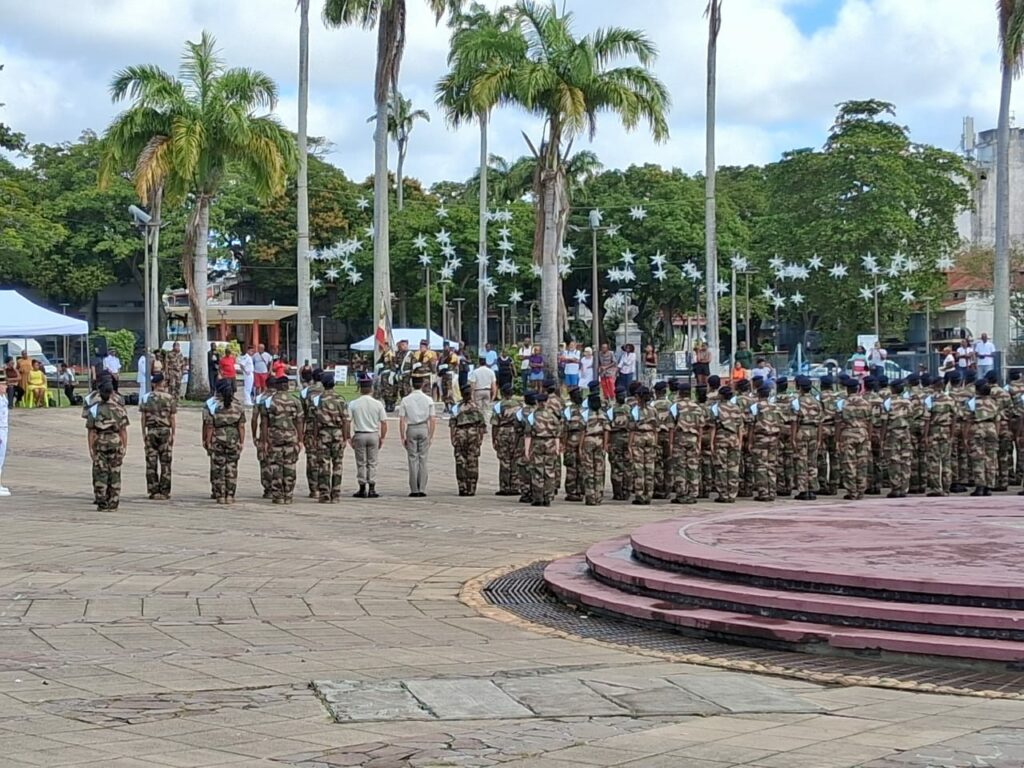 Ce matin, sur la place de la Victoire, à Pointe-à-Pitre, ils étaient une centaine à une cérémonie traditionnelle, la présentation au drapeau.