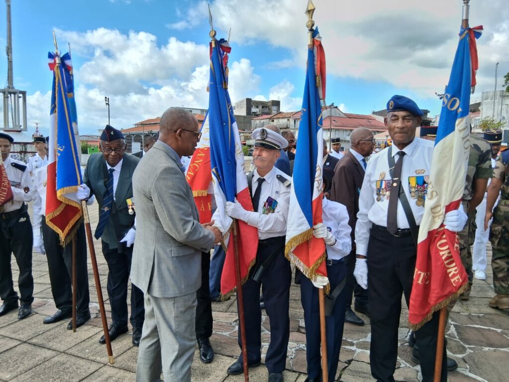 Pour admirer leur prestance (ils ont les bases d’un bon militaire), le conseil municipal de Pointe-à-Pitre autour du maire Harry Durimel, les anciens combattants, des organisations patriotiques, et des militaires, gradés autour du colonel Laurent Nobel.