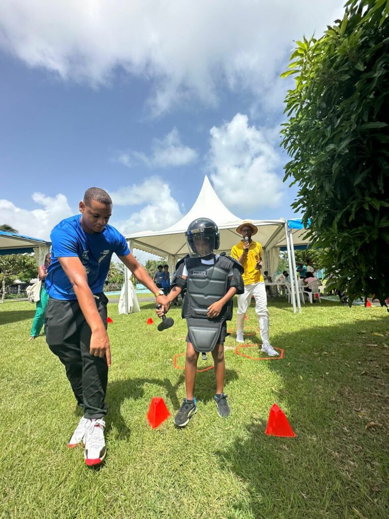 Il s’agit de la seconde édition de cette opération, qui avait connu sa première édition mercredi 26 novembre, au stade de Belle-Rivière à Sainte-Rose en collaboration avec les clubs de football de Sainte-Rose et de Lamentin. « C’est une action de sensibilisation que nous avons l’habitude d’organiser pour le tout public. Il y a des ateliers de prévention, comme les dangers liés aux armes, les dangers de l’alcool, ainsi qu’un parcours pro-police durant lesquels les jeunes seront introduits à notre fonctionnement au travail, ils seront équipés d’un gilet par balles, d’un casque de maintien de l’ordre », précise Steevens Droguet, chargé de projet de l’AJ3P.