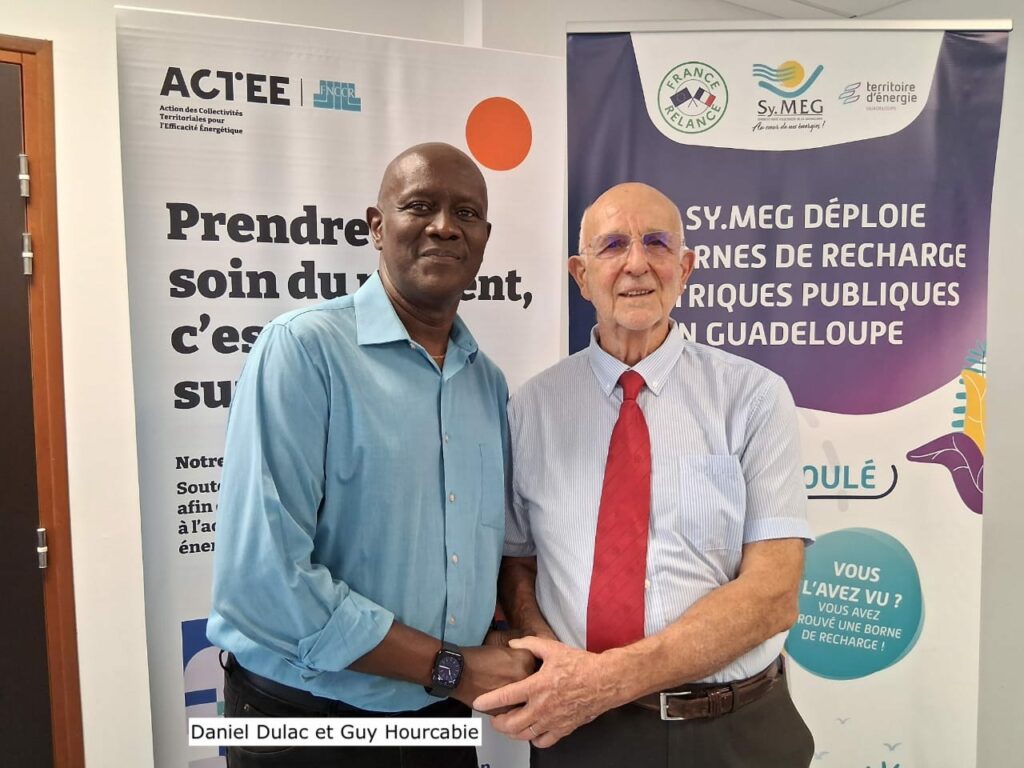 Daniel Dulac, président du SY.MEG, a signé avec Guy Hourcabie, président d’ACTEE, une convention aux termes de laquelle 1,3 million d’euros seront mobilisés et 6 postes financés pour soutenir la rénovation énergétique des bâtiments publics en Guadeloupe.