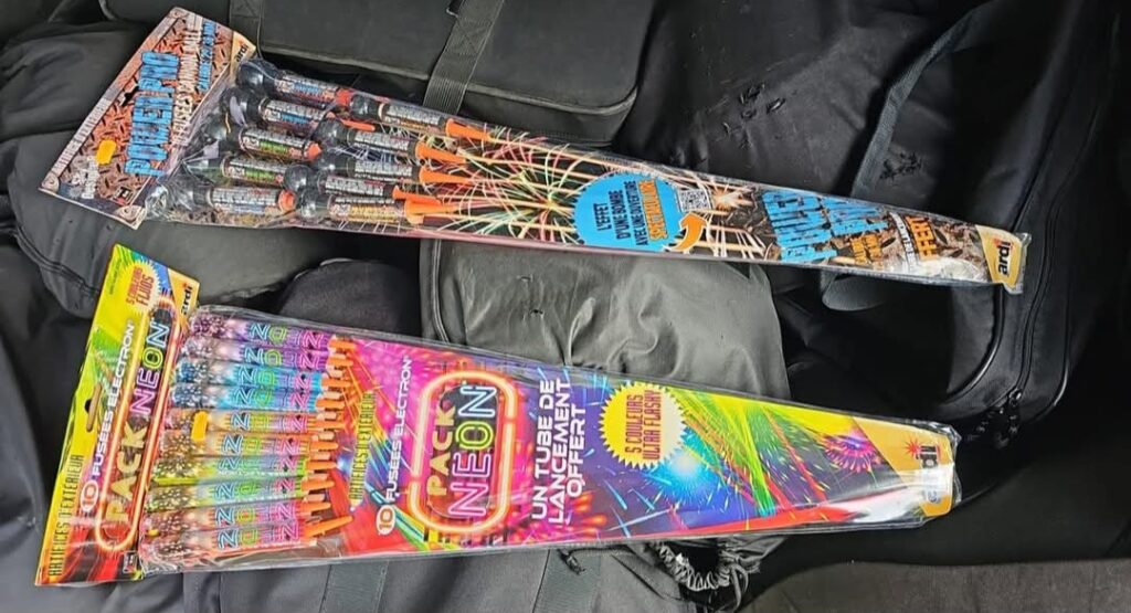 Leur contrôle a été motivé par ces infractions, ainsi que par la présence visible de feux d’artifice sur les jambes du passager arrière, matériels interdits par arrêté préfectoral.