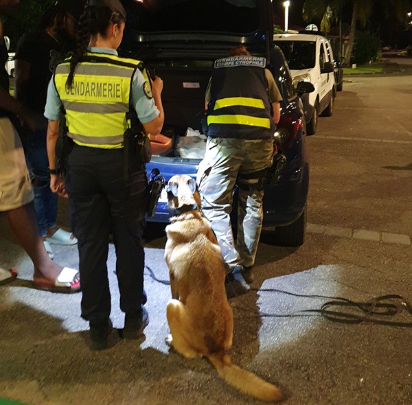 En début de soirée, lundi 22 décembre, les gendarmes de la brigade de Capesterre Belle-Eau, de Goyave et le groupe d’investigation cynophile (GIC) de Pointe-à-Pitre ont effectué des contrôles à Capesterre Belle-Eau sur un axe qui accueille un important flux de circulation. Pour tenter d’enrayer les comportements à risque sur les routes, mais aussi la circulation d’armes et de stupéfiants, les gendarmes ont contrôlé les véhicules et leurs occupants, les coffres, boîtes à gants…