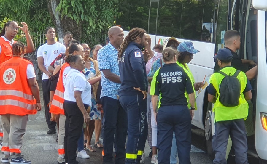 Accueillies devant la mairie de Saint-Claude, l’un des trois points de rassemblement définis par la ville, les personnes à évacuer, les personnes à évacuer ont été identifiées. Ensuite, elles ont embarqué à bord de bus qui ont pris la direction de Baie-Mahault, précédés par des motards de la gendarmerie.