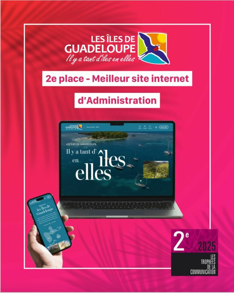 Le Comité du Tourisme des Îles de Guadeloupe (CTIG) a annoncé qu’il a remporté la 2e place aux Trophées de la communication 2025 dans la catégorie numéro 7 : « Meilleur site internet d’Administration » , à la cérémonie de remise de prix qui s’est tenue à Nantes.