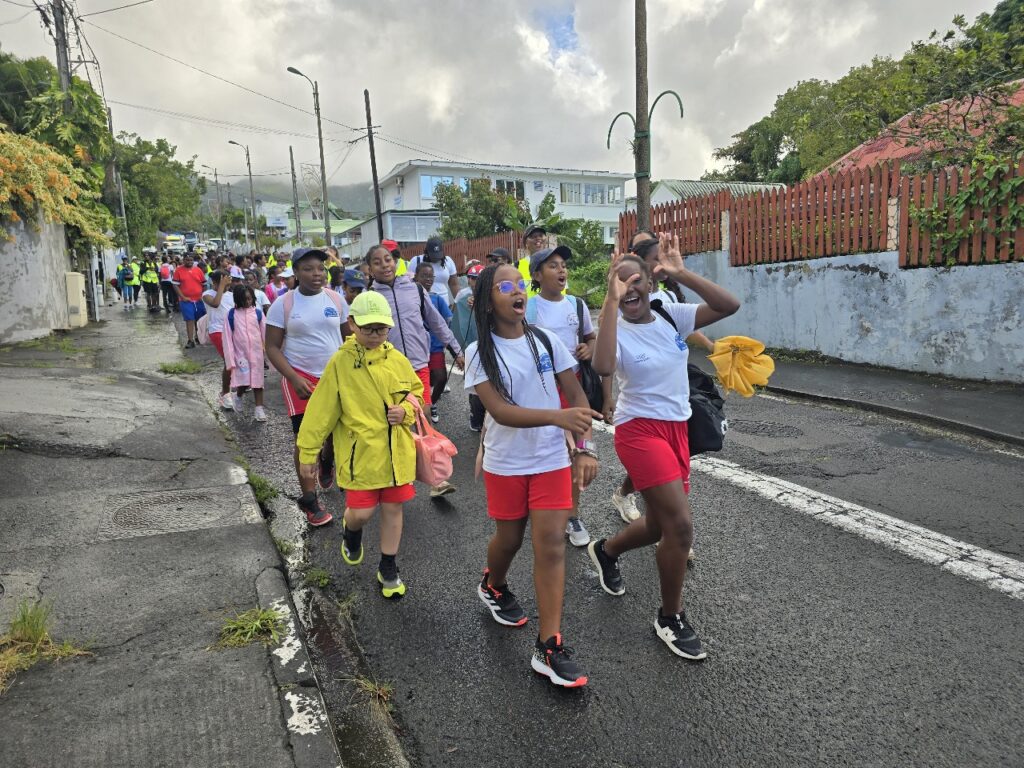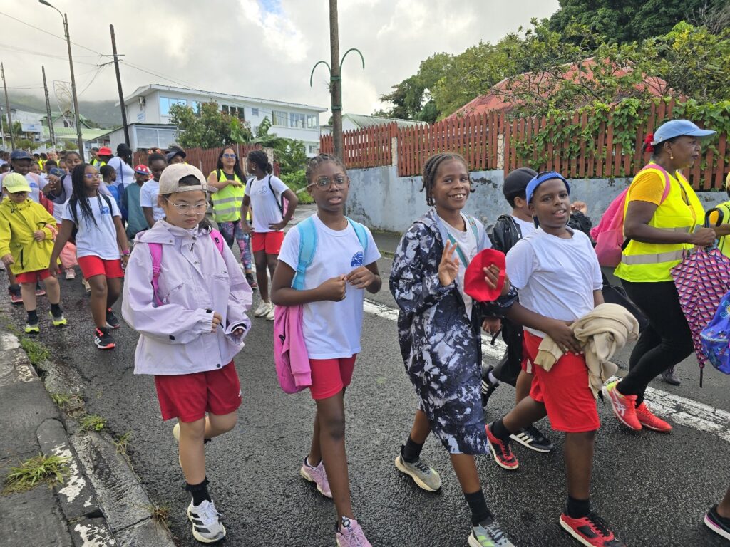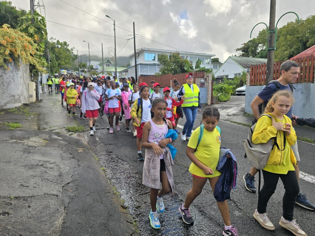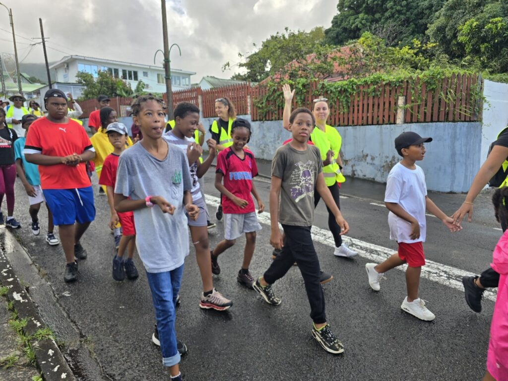 Un millier d’enfants ont marché, chanté et dansé, pendant 3 heures, parfois même sous la pluie, sur 6 km entre Saint-Claude et Basse-Terre, pour soutenir les enfants et les familles touchés par la maladie.