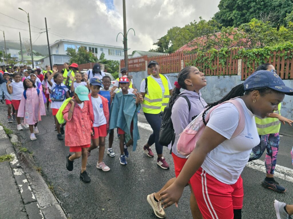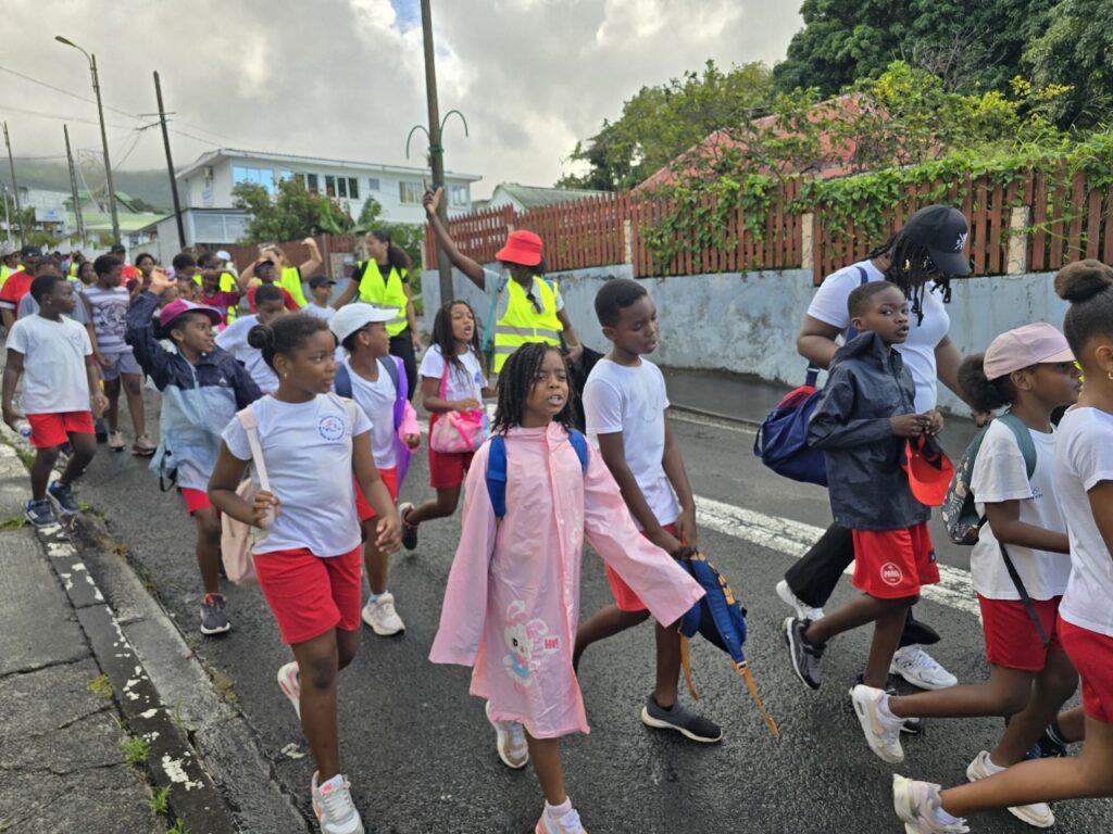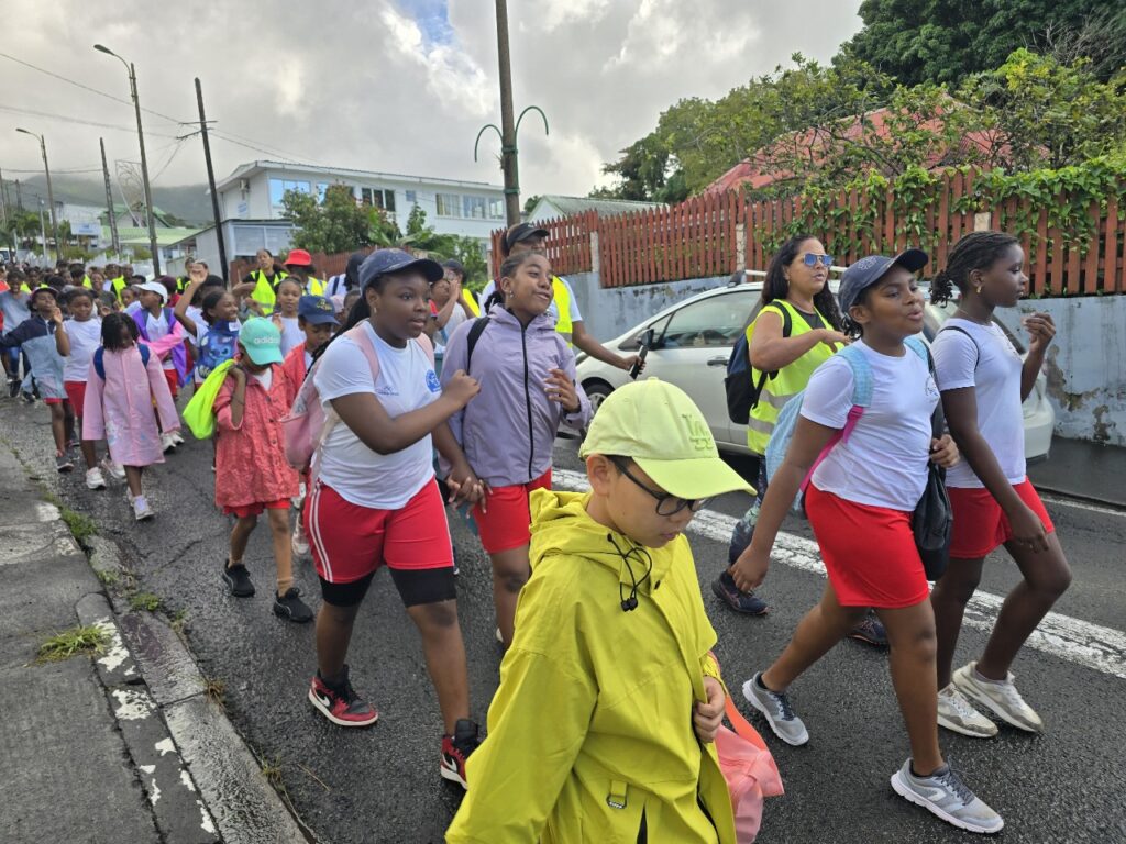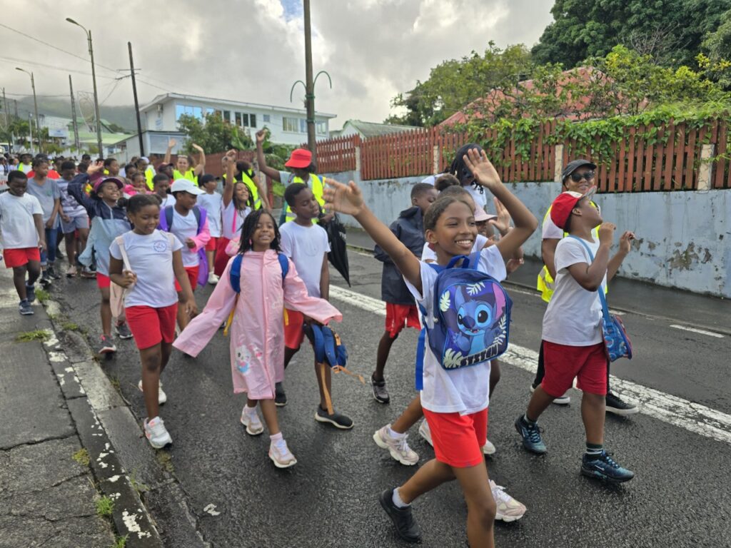 Un millier d’enfants ont marché, chanté et dansé, pendant 3 heures, parfois même sous la pluie, sur 6 km entre Saint-Claude et Basse-Terre, pour soutenir les enfants et les familles touchés par la maladie.