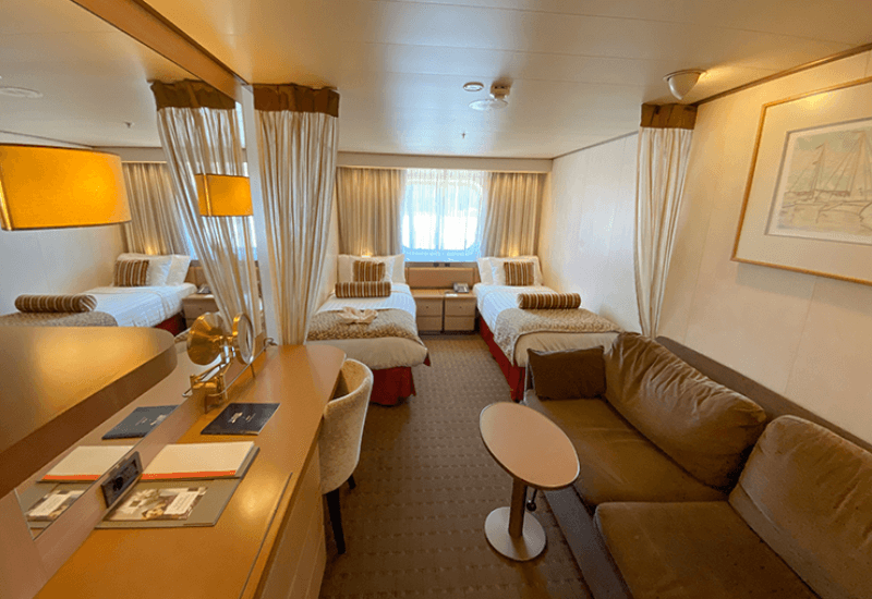 Le navire compte 629 cabines dont 80 % avec vue sur mer et dispose de nombreux restaurants, de deux piscines et d’un spa.