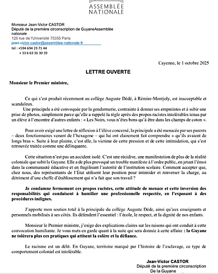 Jean-Victor Castor, député de Guyane, a écrit au Premier ministre :