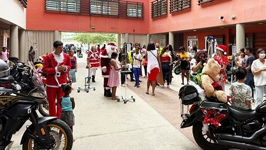 En Guyane, c’est à moto que le Père Noël a effectué sa tournée pour le plus grand bonheur des petits patients des services de pédiatrie du territoire. Pendant 4 jours, le Kdo Ride a mobilisé les motards de plusieurs associations : F5.Club Guyane, Alpha Amazonie et MotoGuyane. Leur mission ? Distribuer des cadeaux aux enfants hospitalisés dans les services de pédiatrie des 3 hôpitaux publics.