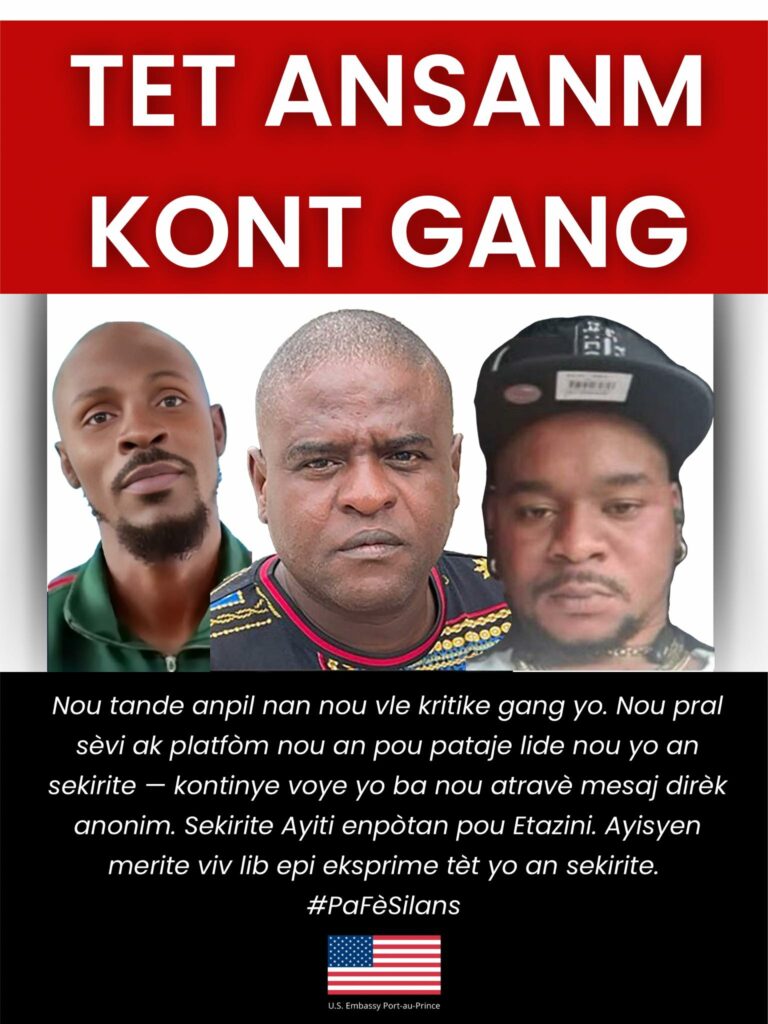 Depuis plusieurs semaines, l’ambassade américaine en Haïti publie un ensemble de messages sur ses plateformes numériques pour dénoncer les agissements des groupes criminels et sensibiliser des gens dans l’entourage de ces individus à les dénoncer aussi.