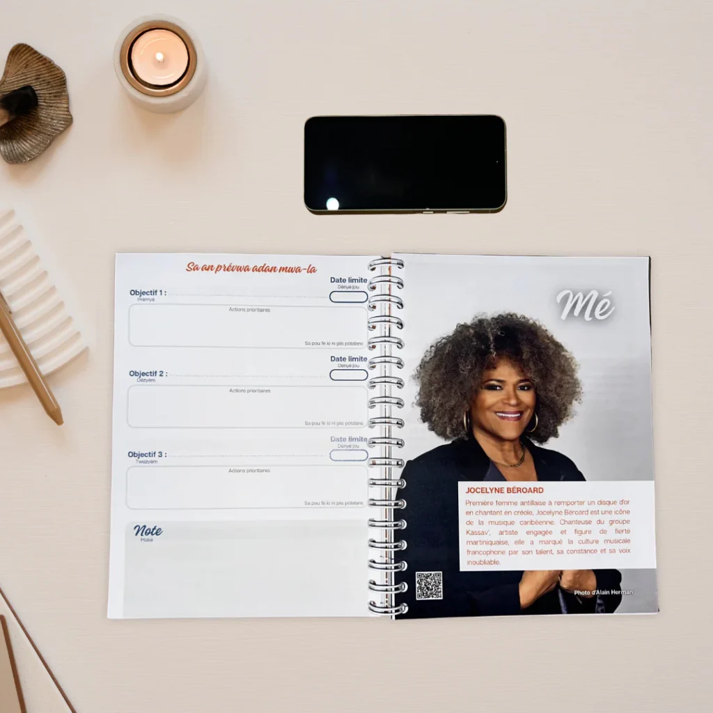 Consultante en gestion de projets, Kindy Alexis a conçu des agendas/planners Pakome les autres, pour disposer d’un outil original d’organisation et d’accompagnement mettant 24 femmes des Antilles-Guyane à l’honneur.