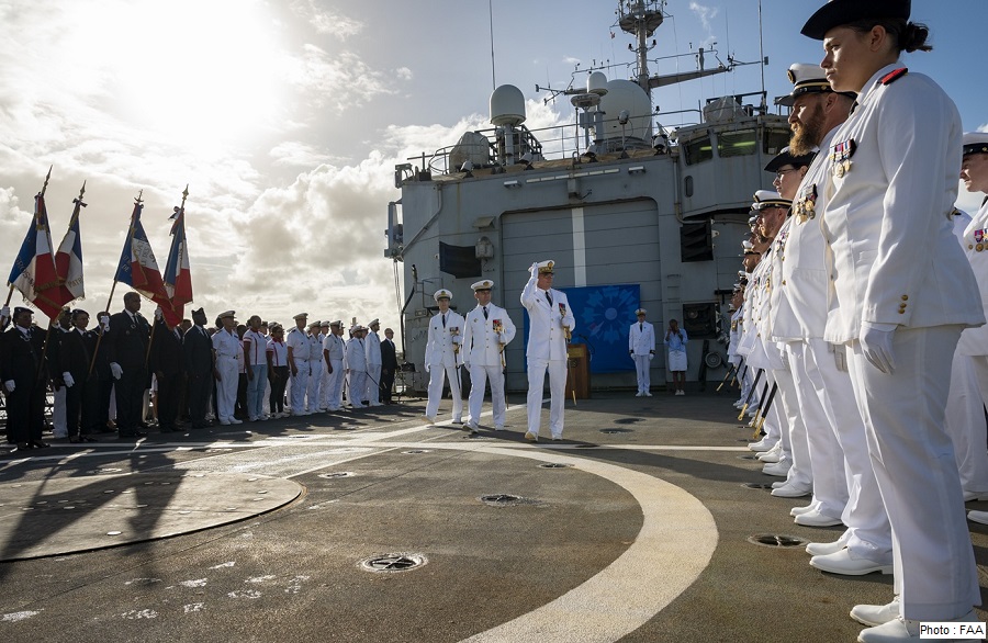 Dans son allocution, le contre-amiral Soubrier a rendu hommage aux anciens combattants et porte-drapeaux présents, « la mémoire vivante de la Nation, a-t-il indiqué. Votre présence nous rappelle que l’engagement militaire est une continuité. Qu’il s’inscrit dans une chaîne de générations ». Puis, s’adressant à l’équipage de la frégate : « Lorsque vous serez confrontés à l’exigence des opérations, loin de vos proches, souvenez-vous : d’autres avant vous ont tenu. Vos anciens ont donné le cap. À vous de le suivre ».