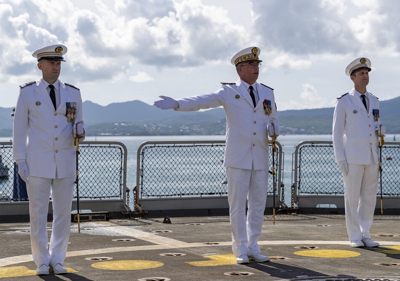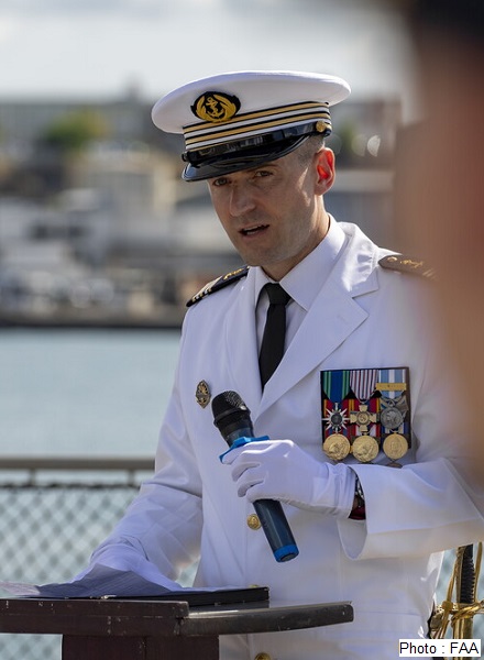 Le capitaine de frégate Clément Arboy succède au capitaine de frégate Frédéric Ollive au commandement de la frégate de surveillance Ventôse.