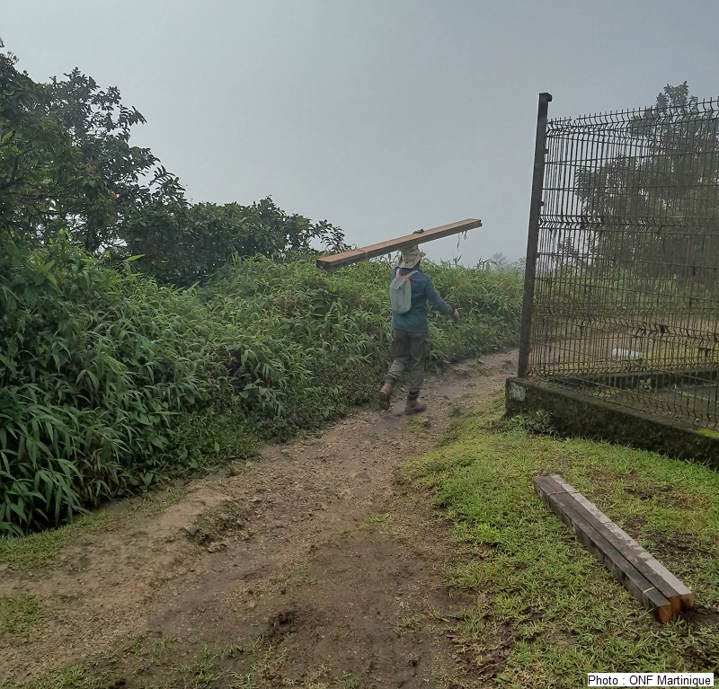 C’est le fruit d’une action collective. Le 2 décembre, la Montagne Pelée a accueilli une mobilisation exceptionnelle : 28 agents de l’Office National des Forêts (ONF) ont collaboré pour rouvrir l’accès à la caldeira. Des agents habituellement affectés à des missions techniques, de l’administratif, de la comptabilité ou encore du système d’information géographique ont rejoint l’équipe d’ouvriers de l’atelier bois pour acheminer des matériaux lourds jusqu’au deuxième refuge de la montagne Pelée.