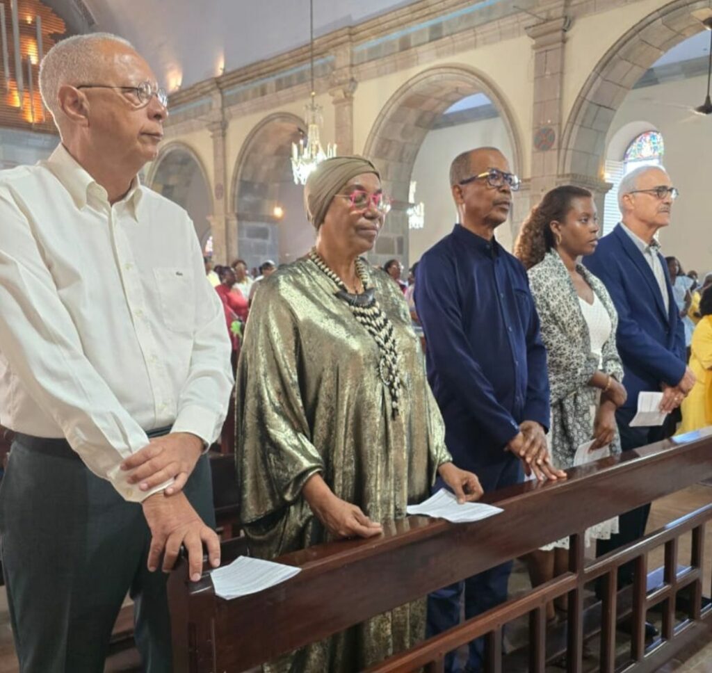 Messe solennelle prestigieuse présidée par l’archevêque de Martinique, Monseigneur David Macaire, qui avait à ses côtés les évêques de Guadeloupe, Philippe Guiougou, et de Guyane, Alain Rancé.