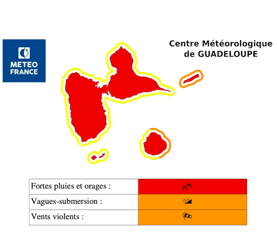 La Basse-Terre, Les Saintes et Marie-Galante, jusqu’ici moins arrosées, risquent de connaître des pluies diluviennes à leur tour.
