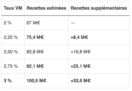 Les projections montrent qu’une révision du plafond permettrait une augmentation des recettes comprise entre 8,4 et 33,5 millions d’euros.