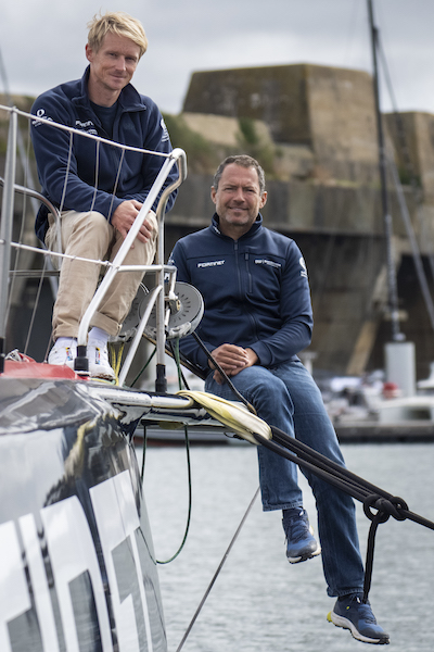 2024 – Roca Globe : Pèlerinage terrestre et maritime vers les Sables-d’Olonne. 9 skippers et leurs bateaux ont été bénis avant la course, dont Fabrice et Romain.