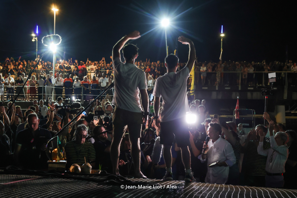Mercredi 5 novembre à 22 h 13 min 58 secondes heure locale (3 h 13 min 58 secondes à Paris), Tom Laperche et Franck Cammas ont franchi les premiers la ligne d’arrivée des ULTIM en baie de Fort-de-France pour la 17e édition de la Transat Café L’Or Le Havre Normandie.