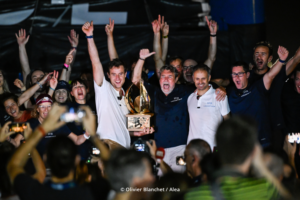 Tom Laperche offre à l’ULTIM SVR-Lazartigue le succès le plus prestigieux depuis sa mise à l’eau en 2021. Franck Cammas, lui, entre dans l’histoire de la course : après ses succès en 2001, 2003, 2007 et 2021, il devient le premier marin à avoir remporté la Transat